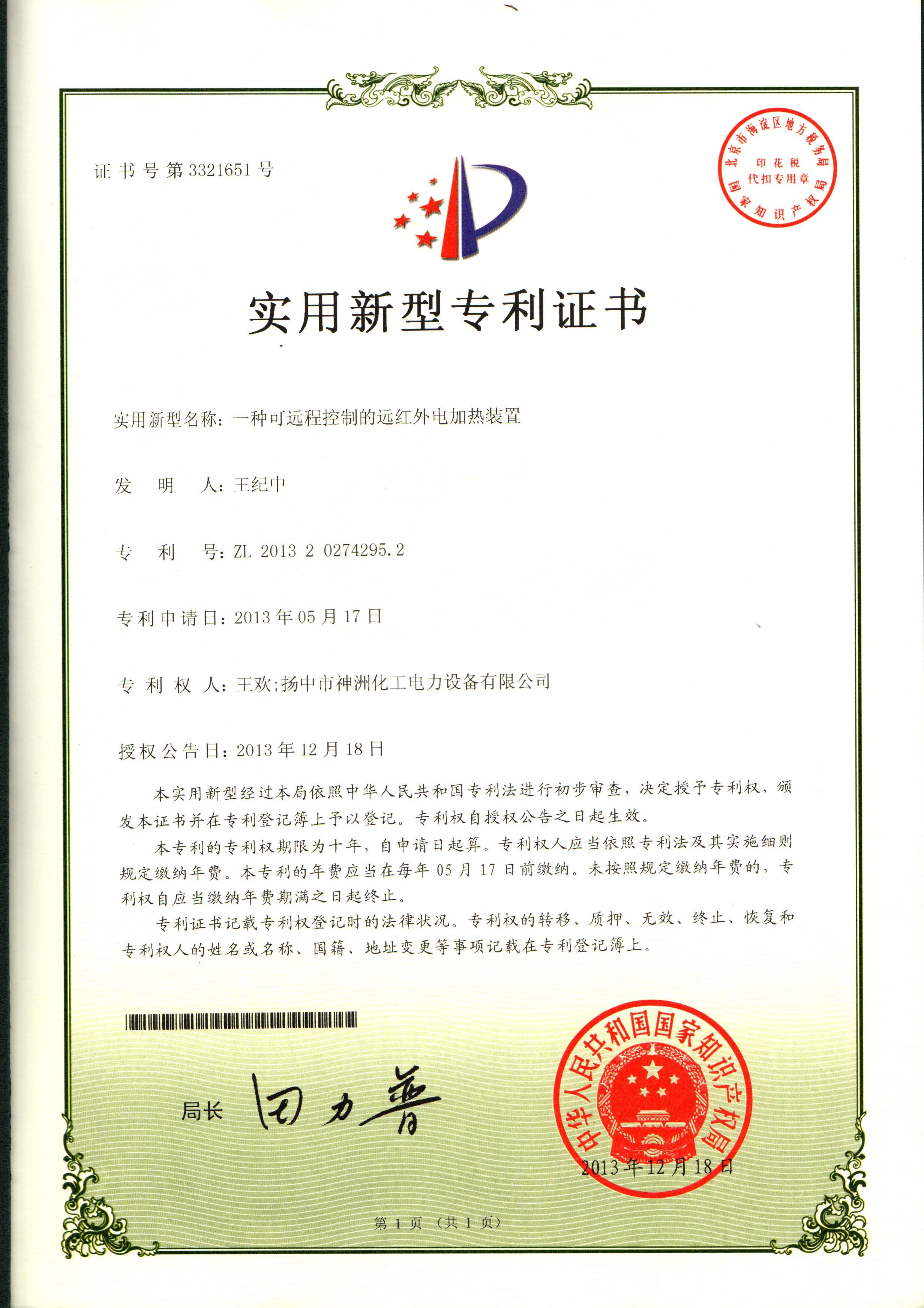 | 一種可遠程控制的遠紅外電加熱裝置 | 一種生產(chǎn)石墨烯的遠紅外反應釜 | 一種生產(chǎn)鎢酸鈉的壓煮釜專用的遠紅外輻射電加熱裝置 |